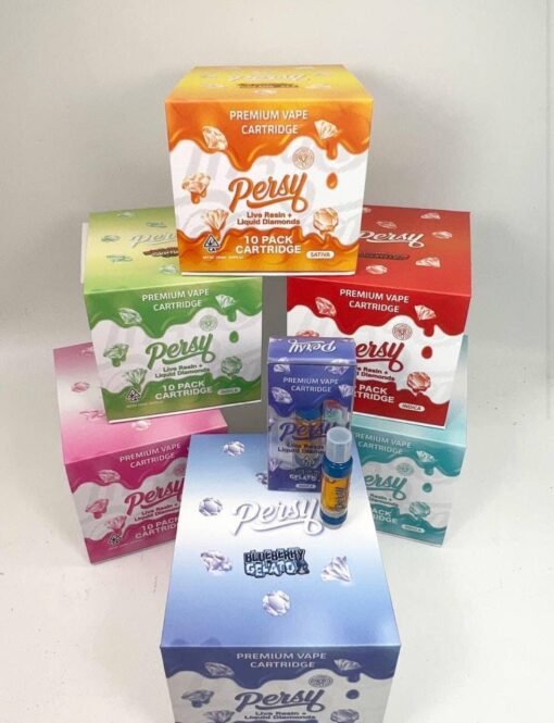 Discover Persy Carts Blueberry Gelato flavor for a premium vaping experience. Enjoy rich taste and high THC percentage with Persy Carts. Perfect for vapers and enthusiasts.